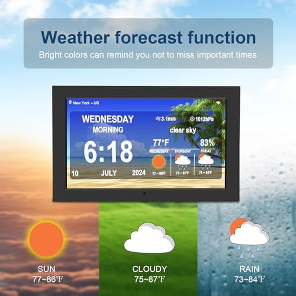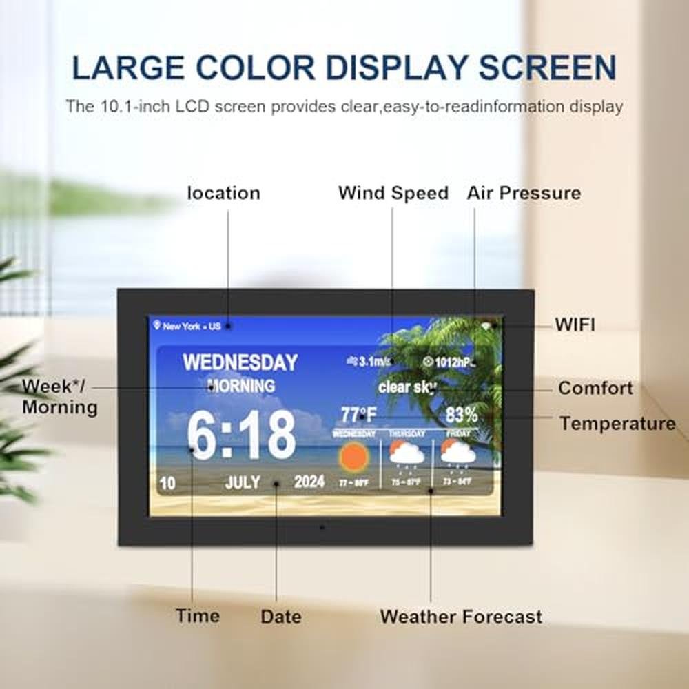 - • 10.1inch WIFI Digital Calendar Jazeyeah smart desk calendar is HD display that can withstand daily use, making it a reliable and long-lasting aid for a new generation of time planners. The time can be seen clearly from any angle. The current time period is clearly and simply represented in the form of an icon.And it can also automatically update the DST.