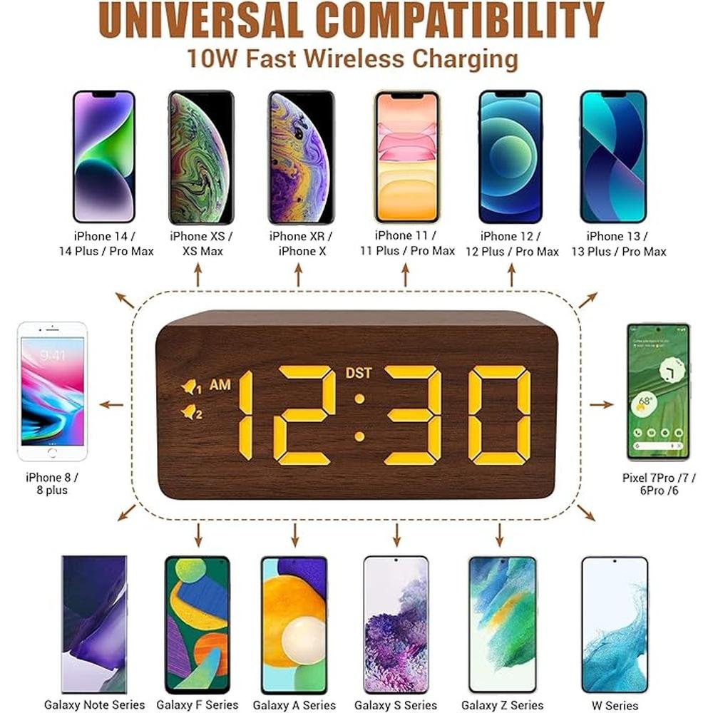 - • 10W Fast Wireless Charging- Compared with other digital alarm clocks on the market which only have 5W wireless charging, this wooden digital alarm clock is upgraded to 10W wireless charging, which can achieve faster charging speed and save your phone charging time.