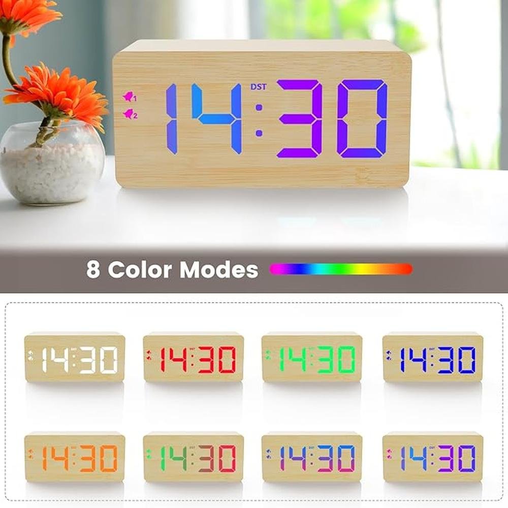 - • Stylish Wood Grain Surface- This exquisite digital alarm clock is made of high-quality wood and has a stylish design. It is not only a clock, but also a perfect decoration for your home. You can put it anywhere in your room, on your bedside nightstand or living room table. The stylish appearance and multiple functions make it suitable as a gift for your family or friends.