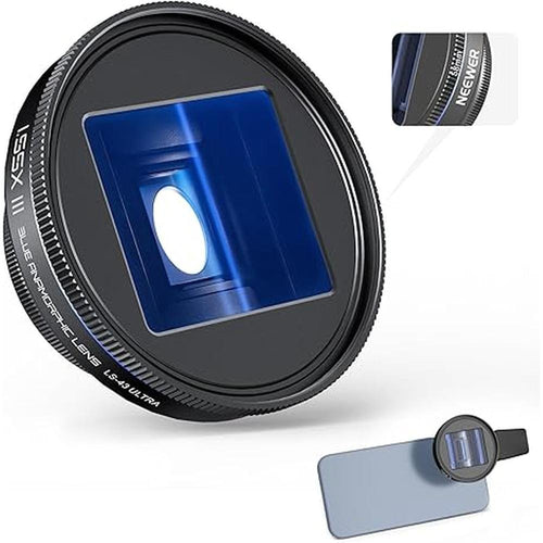 NEEWER 1.55x Blue Anamorphic Lens Compatible with iPhone Android Samsung, Phone Camera Accessories with 17mm Threaded Lens Clip & 58mm Filter Adapter Ring, Cinematic Wide Screen Effect, LS-43 Ultra