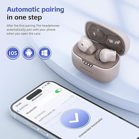 Experience the latest Bluetooth 5.4 technology with the HAPPYAUDIO S4 wireless earbuds. Enjoy a stable, fast, and long-range connection with low power consumption. Seamless one-step pairing and smart touch controls make it easy to manage your music, calls, and voice assistants. With built-in noise cancellation and HiFi stereo sound, these earbuds deliver an immersive audio experience for your mobile devices.
