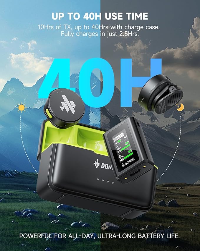 Donner VPM-20 Wireless Lavalier Microphone for USB-C/Lightning iPhone iPad Android Camera, with Charging Box, Dual-Channels Mics, Plug-Play, 1000ft Range, 48KHz 24Bit, Noise Cancellation, 40h Use Max
