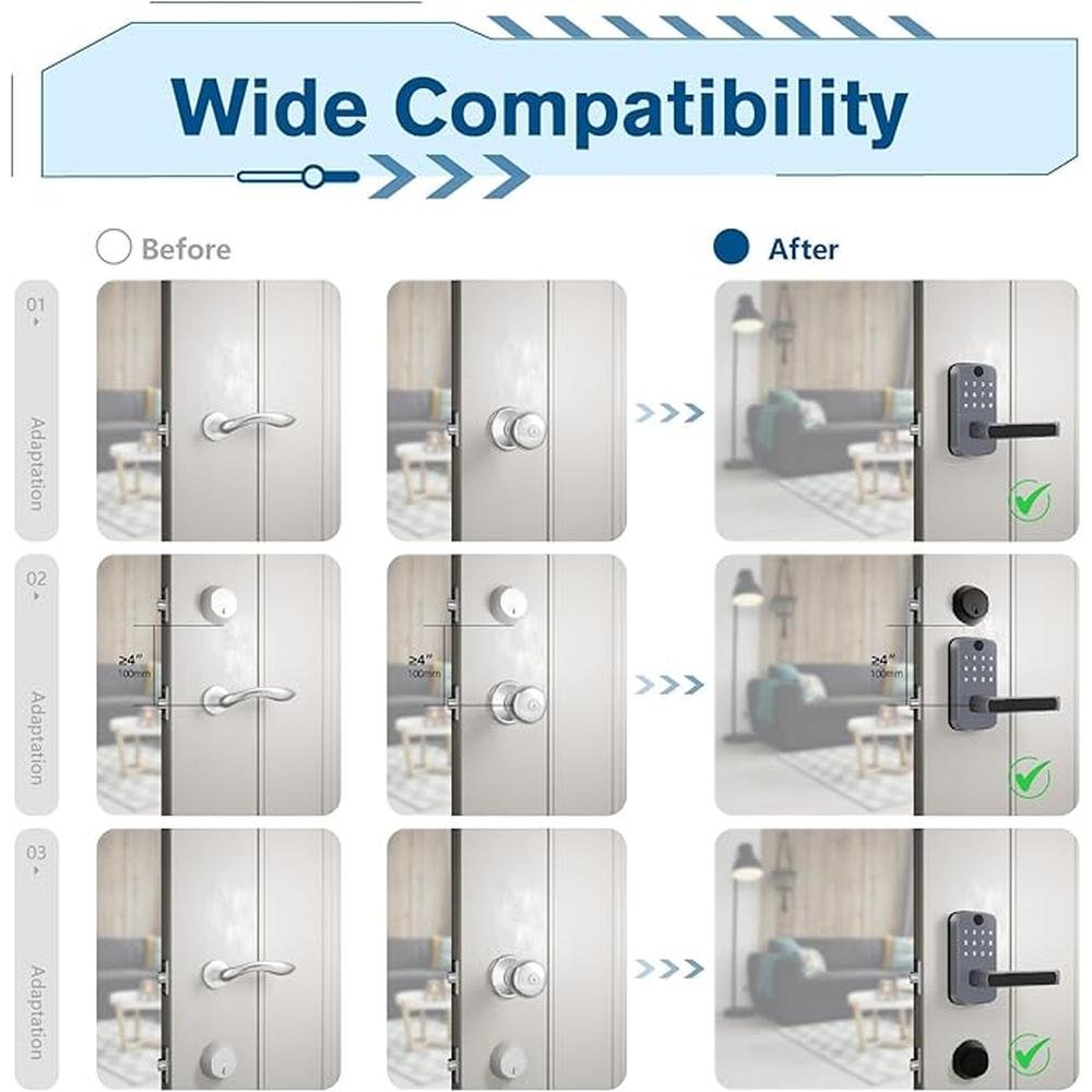 - • 6-In-1 Unlocking Options You can unlock the door using fingerprint recognition, a Bluetooth-enabled mobile app, personalized PIN code, key fobs, mechanical keys, or even Alexa voice commands (with Olumat WiFi gateway).