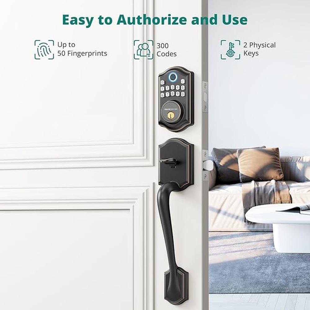 Keyless Entry Door Lock with Handle Set - Fingerprint Deadbolt, Electronic Keypad Deadbolt, Smart Locks for Front Door, Auto-Lock & One Touch Locking, Easy Installation - Oil Rubbed Bronze