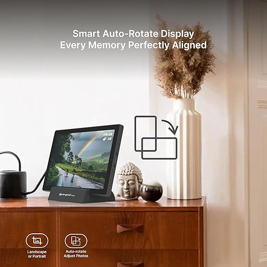 Enjoy stunning image clarity, vibrant colors, and wide viewing angles on the 10.1” HD IPS display. The touchscreen interface makes browsing albums easy and fun, while auto-rotate ensures perfect orientation - whether the frame is placed vertically or horizontally.