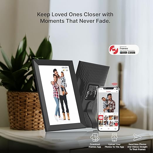 - • Share Photos & Videos Instantly from Anywhere Connect the frame to Wi-Fi and send memories directly using the Frameo app. Works with both Android and iOS — perfect for staying connected with family worldwide.