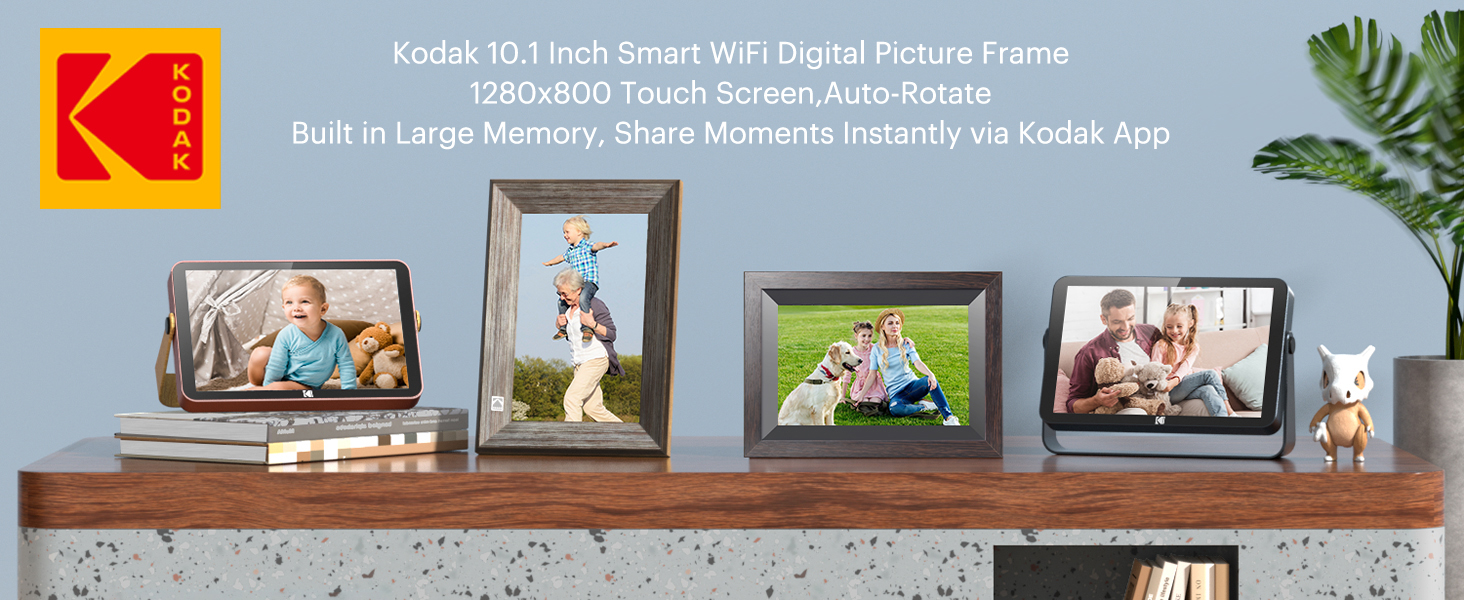 - • High Definition Screen Display KODAK has enabled the sharing of your memorable moments through digital photo frames. Enjoy your precious photos and videos on this 10.1-inch Smart Frame with 1024x600 HD IPS display and built-in speakers.