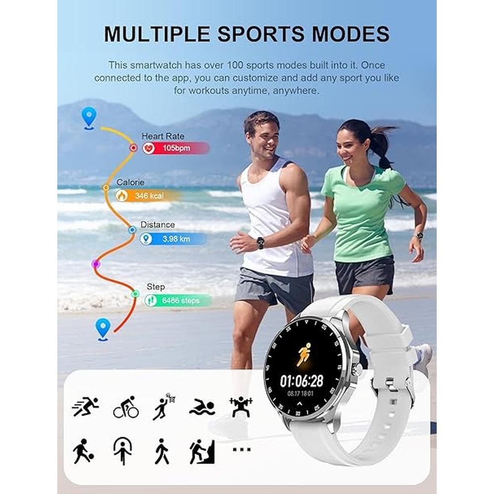 - • 100 SPORT MODESThis activity fitness tracker features over 100 sports modes, including cycling, running, basketball, yoga, skiing, and more. Connecting to the APP via Bluetooth lets you download more sports, such as ball sports, water sports, equipment sports, etc. Watch with earbuds can monitor key data, such as exercise heart rate, walking distance, exercise speed, and calories burned, to help you understand your exercise situation in real-time.