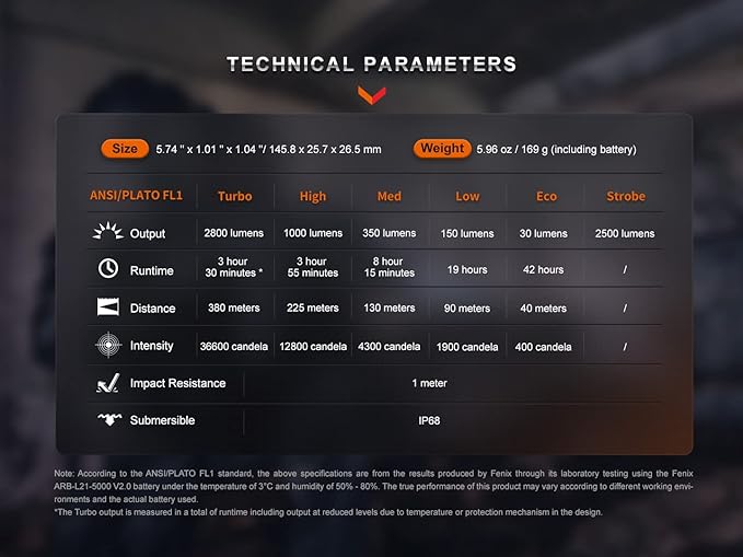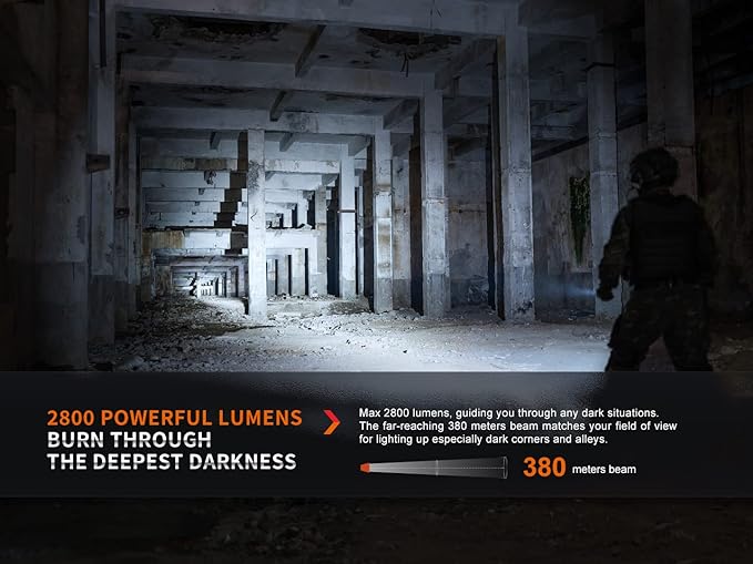 - • PRIMARY AND BACKUP FLASHLIGHTS - The Fenix PD36R PRO tactical flashlight has a bright beam of up to 2800 lumens and a throw of 415 yards. The mini-lite clip-on backup flashlight can provides 150 lumen illumination with red and blue signal lights.