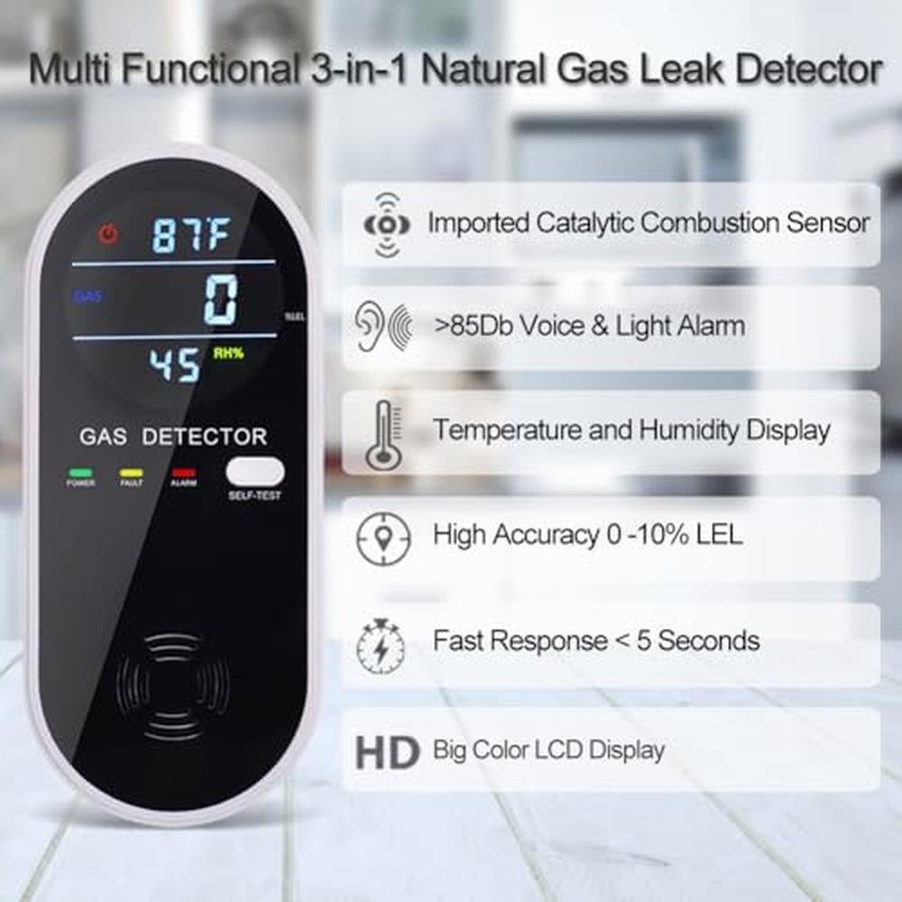 • • 3 in 1 Gas DetectorFLUNGSKY combination 3 in 1 Detector Integrated Combustible Gas, Temperature and Humidity Sensors, Real Time to Detector the Environment Gas Safety for us.