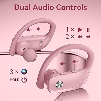 - • Designed for Sports Sport headphones to keep you motivated, a secure fit that wont shift or fall out during long hours of training, and no wires to hold you back. Equipped with 3 pairs of ear caps and flexible earhooks, which can stay on your ears and get a suitable fitting. So that you will not feel tired and pain when wearing it for a long time. bluetooth earphones can fit for camping, running, or working out, even on a rainy day.