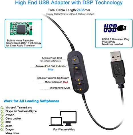 This computer headset comes with USB adapter with volume controller & mic mute button. The wired headset with mic which widely compatible with PC/computers.laptops and Mac. The USB telephone headset is designed for softphones, such as AVAYA,Cisco Jabber,3CX,Microsoft Teams, Skype for Business, Skype, Lync,Zoom,Countpath Bria, and most other well-known softwares.