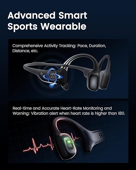 HaptiFit Terra Advanced Smart Sports Wearable, Open Ear Bluetooth Bone Conduction Headphones with Mic and 32GB MP3, Waterproof Wireless Earphones for Workouts, Swimming and Running, Grey
