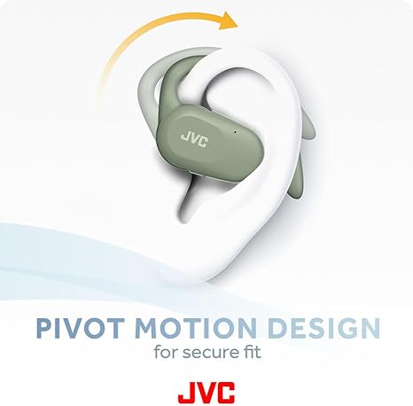 The JVC nearphone open ear true wireless headphones are Bluetooth 5.4 technology ensures a dependable connection. These JVC wireless headphones come with 16 mm driver, Pivot Motion Mechanism, delivering up to 26 hours of playback, IPX4 rated of water registant.