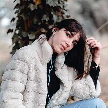 LUDOS Ultra Wired Earbuds in-Ear Headphones, 5 Years Warranty, Earphones with Mic, Noise Isolating Ear Buds, Memory Foam for iPhone, Samsung, School Students, Kids, Women, Small Ears - Turquoise