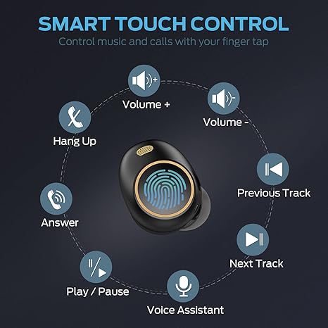 - • Smart Touch Control HeadphonesThe simple and convenient touch control system is more user friendly, tap once to playpause music and answer calls, double tap to skip forwardbackward, hold to adjust the volume. You can easily control it without operating the phone.