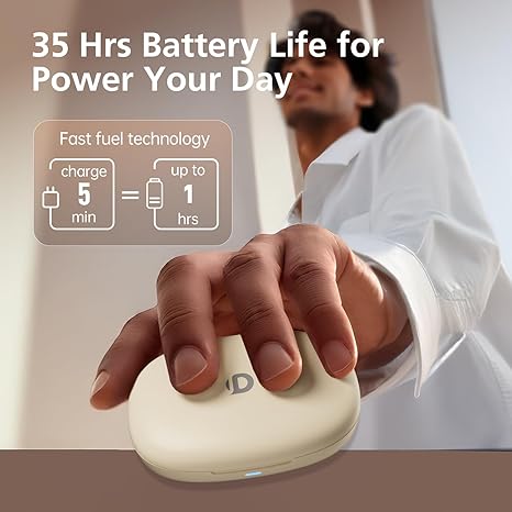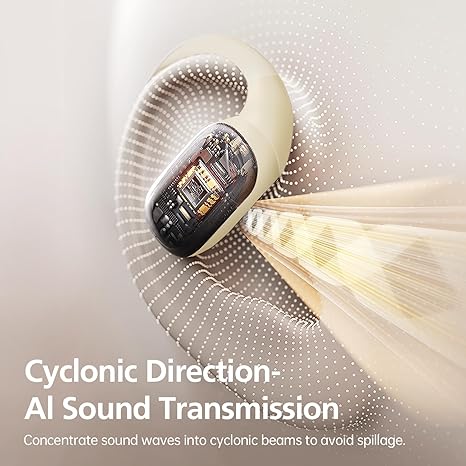Open Ear Headphones, 35 Hours Playtime True Wireless Open Ear Earbuds with Ear Hooks, Air Conduction Headphones, Bluetooth 5.3, Clear Calls, IPX6 Waterproof Wireless Earphones - Beige