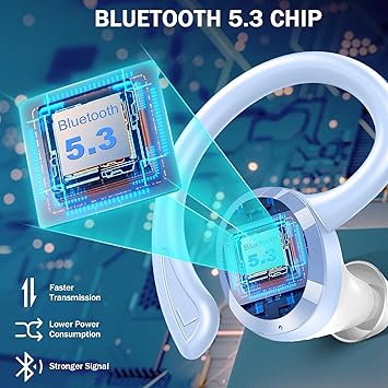 - • Bluetooth 5.3, Quick Connection Rulefiss Q38 wireless earbuds sport uses Bluetooth 5.3 technology and dual-channel transmission, and supports protocols such as HSP, HFP, A2DP and AVRCP. Compared with Bluetooth 5.2, the transmission speed is 150, the stability is 50, 51ms low latency, and it is easily compatible with iOSAndroidWindows systems. After pairing the devices for the first time, the Bluetooth earbuds will automatically connect when you take them out of the charging case.