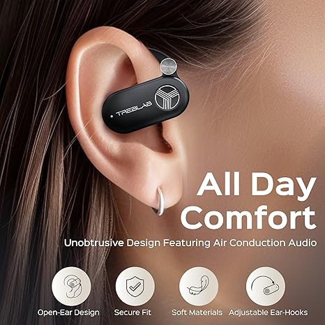 - • All-Day Comfort These wireless earphones are lightweight with secure ear hooks. Each earbud weighs just 8.9g, making them perfect for workouts or all-day wear. Wireless ear buds designed for open-ear comfort.