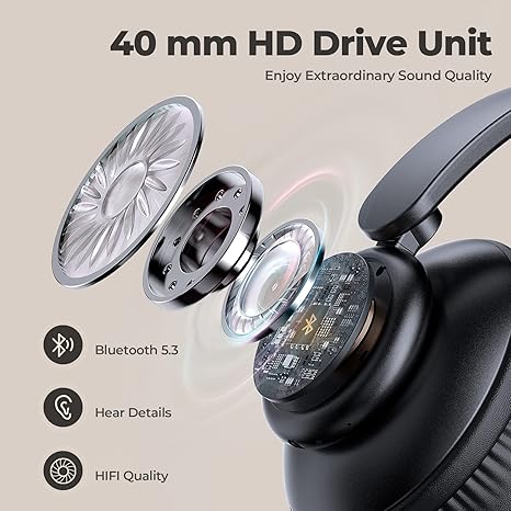 V8 Wireless Bluetooth Headphones Over Ear, 80 Hours Playtime Wireless Headphones with Deep Bass,Lightweight Foldable Headphones Built-in Mic,HiFi Stereo Sound for Travel Work Laptop PC Cellphone