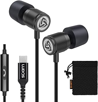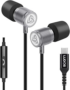LUDOS Ultra USB C Headphones, 5 Years Warranty, Magnetic USB-C Earbuds for iPhone 16 15 Pro Max Plus Samsung Galaxy S24 S23 Ultra S22 S21 FE S20 Z Flip 3 Fold 4 A53 A54, USB Type C Earphones - Black