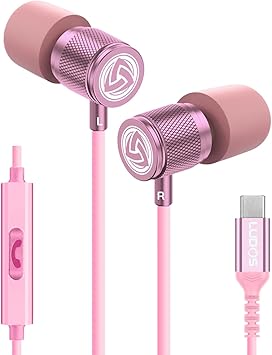 LUDOS Ultra USB C Headphones, 5 Years Warranty, Magnetic USB-C Earbuds for iPhone 16 15 Pro Max Plus Samsung Galaxy S24 S23 Ultra S22 S21 FE S20 Z Flip 3 Fold 4 A53 A54, USB Type C Earphones - Pink
