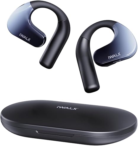 iWALK Open Ear Headphones, True Wireless Open Ear Earbuds with Comfort Earhooks, Bluetooth 5.3 Headphones 60H Playtime with Type-C Fast Charging Case, Clear Call Mics, Sweat-Proof for Sports/Workout