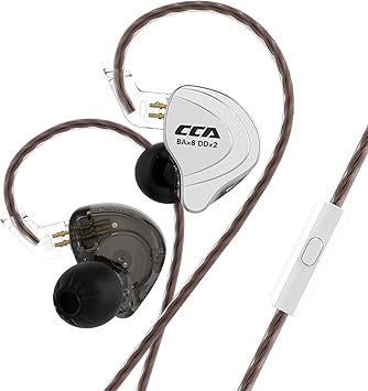 CCA C10 HiFi IEM Headphones, 4BA 1DD Five Drivers Hybrid in Ear Earphones, in Ear Monitor Headphones Earbuds with 2pin 0.75mm Gold Plated Detachable Cable for Musician Singers Stage (Black with mic)