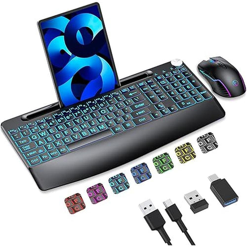 GreenLaw Keyboard case for iPad 9.7 inch, iPad 6th Gen (2018), iPad 5th Gen (2017), iPad Air 2 (2014), 7 Color Backlit, Support 2 BT Devices, Touchpad Keyboard iPad Pro 9.7, Blue