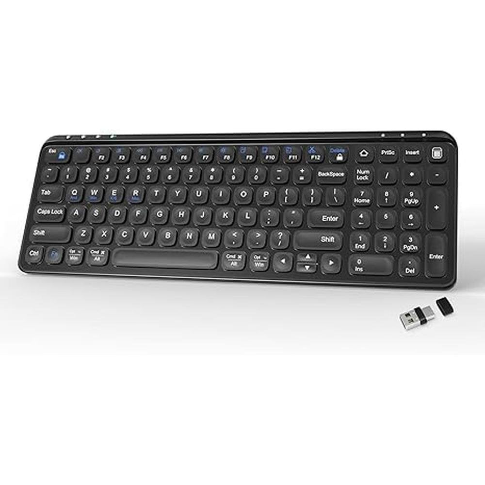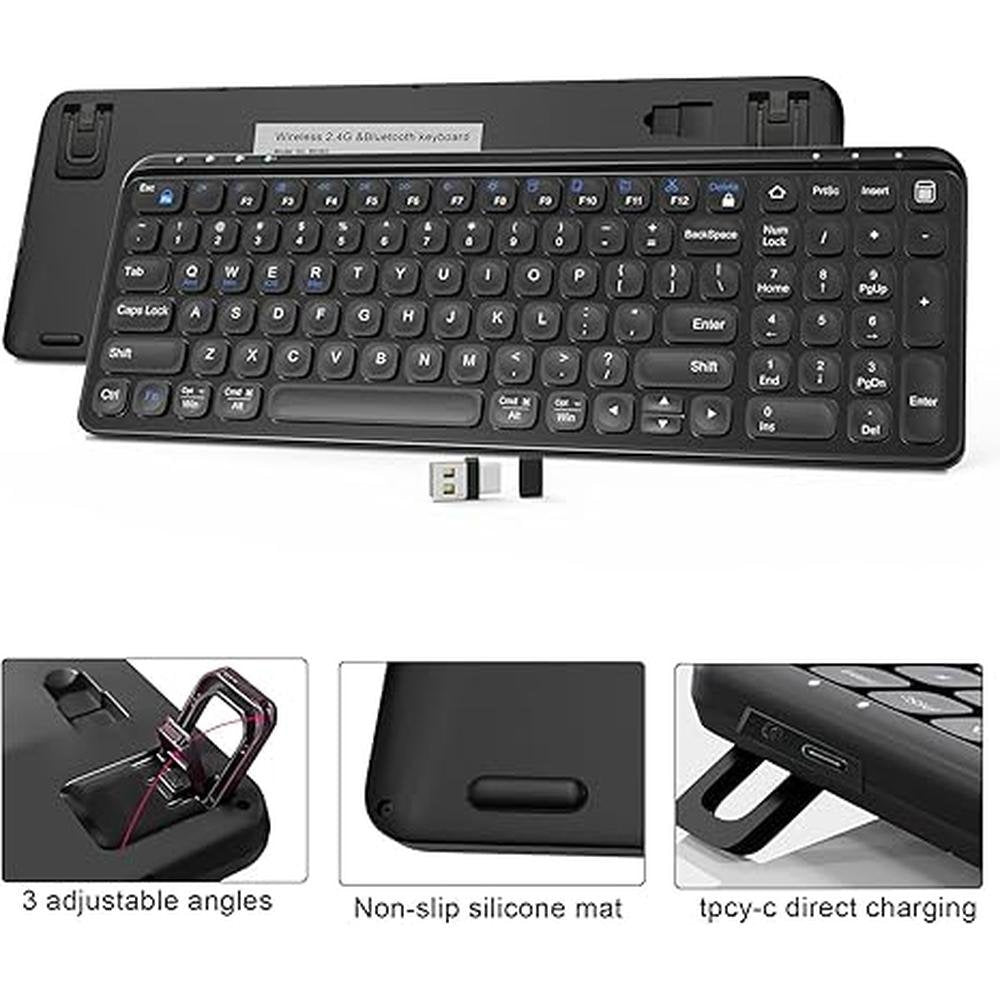 - • 4-in-1 Seamless Multi-Device ConnectionUpgrade your workflow with YORUNOHOSHIs versatile 99-key wireless keyboard, featuring dual-mode connectivity (2.4G Bluetooth 5.0 x3). Effortlessly switch between 4 deviceslaptop, PC, tablet, or smartphonewithin a 10M range. Perfect for multitaskers, this Mac Bluetooth keyboard auto-detects OS (WindowsiOSmacOSAndroid) and pairs instantly. No more pluggingunpluggingjust seamless productivity