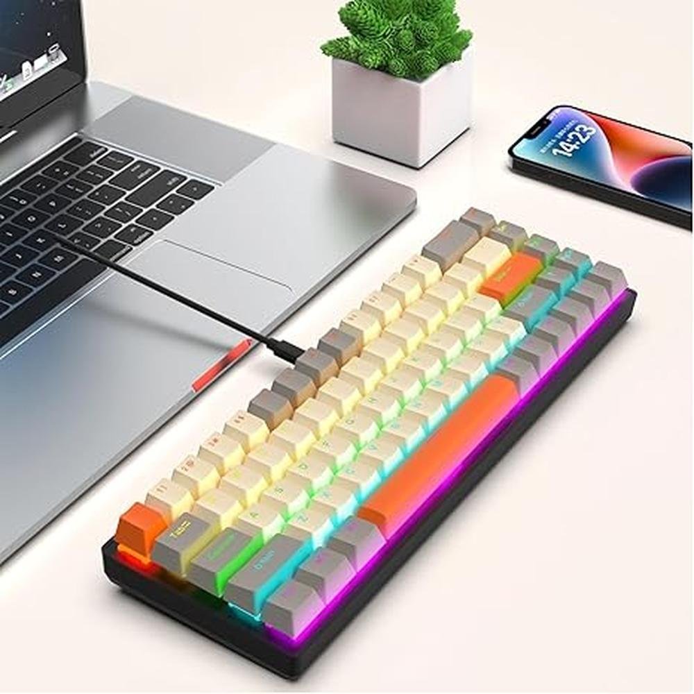pSPACE SAVING Multifunctional wired mechanical keyboard adopts small design, space saving, lightweight and portable, suitable for users with limited desktop space.ppSEPARATE KEYBOARD AND CABLE DESIGN Wired mechanical keyboard adopts separate keyboard and cable design, which is easy to carry and more convenient for outdoor use.ppUNIQUE DESIGN Mechanical gaming keyboards keycaps are colorful, full and never fade, three color combinations make the keyboard more personalized and distinctive for users.ppBLUE SWITCH DESIGN Wired keyboard adopts the blue switch design of mechanical keyboards, which provides obvious touch and feedback, and comfortable hand feeling.ppMULTI SYSTEM COMPATIBILITY The mechanical gaming keyboard supports multiple computer systems, compatible with for Windows, for OS X and for Linux, enjoy accurate input experience.ppbrppItem Typenbsp68nbspKeynbspMechanicalnbspKeyboardppMaterial ABSppConnection with Computer WiredppNumber of Keys 68ppShaft Type Blue SwitchppWaterproof Function Support WaterproofppBacklight Effect Ice Blue Lighting Design (19 Different Light Modes)ppHits 50 Million TimesppKeycap Technology Two Color Injection MoldingppWhether Multimedia Function YesppbrppHow to UseppPlugnbspandnbspPlayppbrppPackage Listpp1 x Keyboardpp1 x USB Cablepp1 x User Manualppbrp