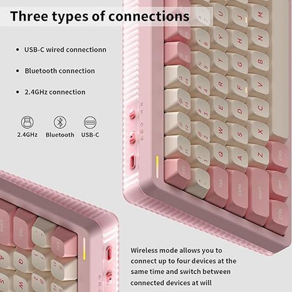 - • Multiple ConnectivityHalo75 V2 mechanical keyboard supports Bluetooth2.4GHzUSB-C connectivity and is compatible with macOSWindowsLinuxAndroidiOS. Wireless mode allows you to connect up to four devices at the same time and switch between the four devices at will, allowing you to go from office to gaming with ease.