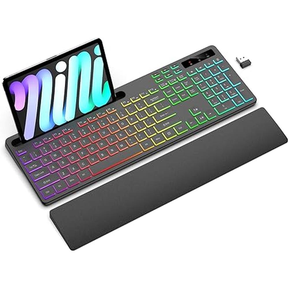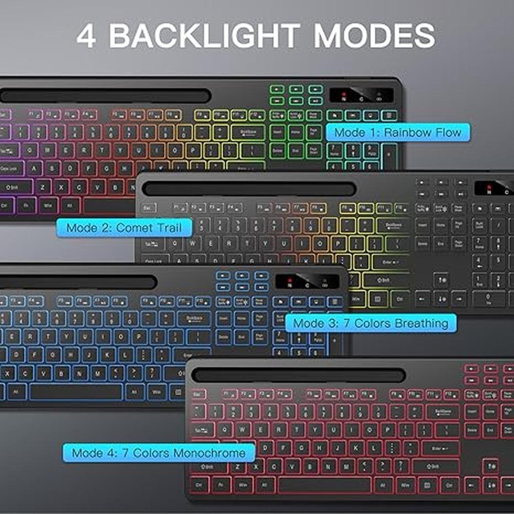 - • Wireless keyboard has 7 colors 4 modes RGB backlit options and adjustable brightness to provide you with more visual aesthetics typing atmosphere.