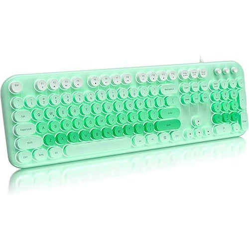 Retro Punk Keyboard,Full Size Typewriter Green Keyboard Floating Key Design, Wired USB, with Foldable Stands Compatible with PC/Mac/Laptop/Computer Keyboard(Green)