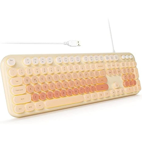 Wired Backlit Keyboard, Full Size 104-Key Retro Punk LED Backlit Keyboard with Colorful Round Keycaps for Desktop PC and Laptop
