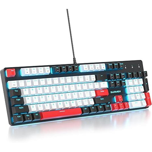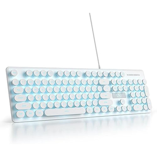 Typewriter Keyboard 104-key Punk Gaming Retro Keyboard LED Ice Blue Backlit Cute Keyboard with Wired USB Suitable for PC/Win/Mac/Laptop Computer Keyboard?White?