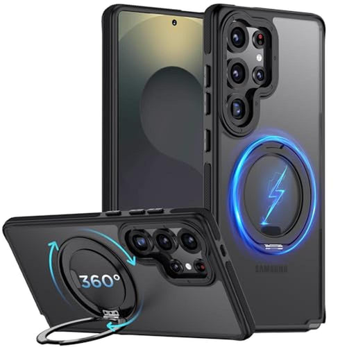 Mondelete 360 Spin Magnetic Stand for Samsung Galaxy S25 Ultra Case, Compatible with Magsafe Military Grade Drop Protection, Matte Hard Slim S25 Ultra Phone Case with Kickstand Ring Holder 113