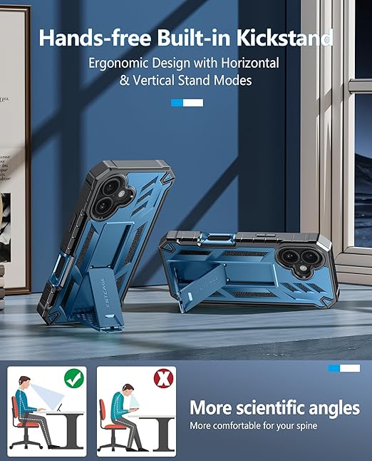 - • Built-In Kickstand The iPhone 16 Plus Case with stand works perfectly both in vertical and horizontal positions.Convenient for reading,watching movies,playing games,browsing the web and face-to-face chatting with friends.Provides hands-free portrait and landscape viewing angles