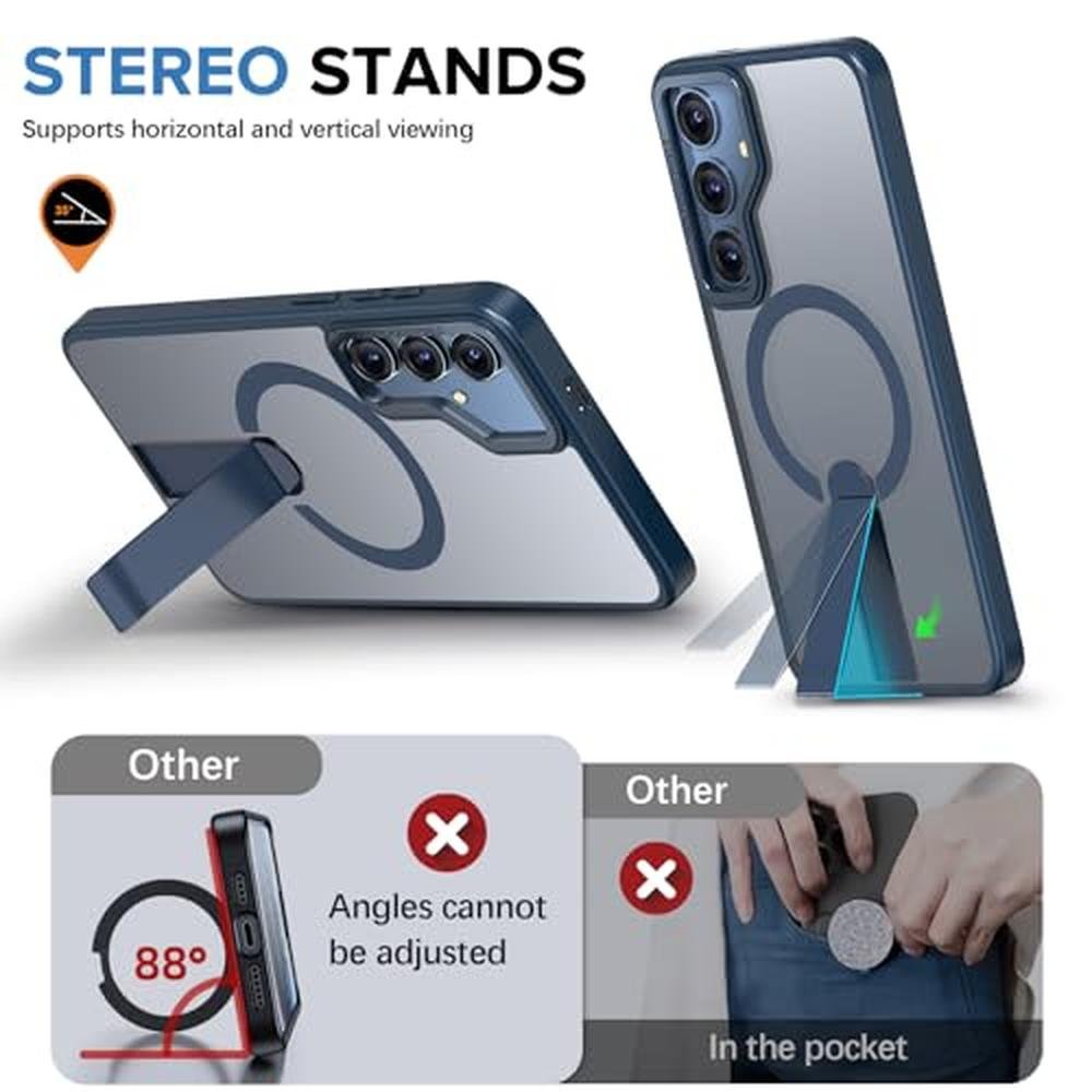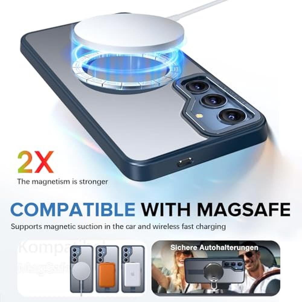 for Samsung Galaxy S25 S24 Case with Screen Protector Compatible with MagSafe Slim Translucent Matte Military Grade Drop Protective Shockproof Cover for Samsung S25 S24 Kickstand Phone Case