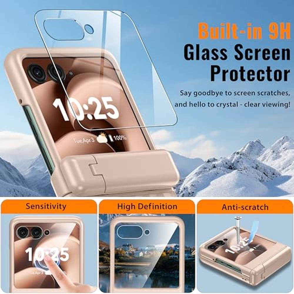 Built-in 9H Screen Protector This Moto Razr 2025 case is uniquely designed with a built-in high-definition 9H screen protector with excellent impact resistance, which can effectively disperse the impact force in case of accidental dropping of the phone and provide reliable protection for the screen. At the same time, its high surface hardness, can effectively resist the daily use of sharp objects scratches, to avoid screen scratches. After installation, it fits perfectly with the phone screen without affecting the touch sensitivity and display effect, so you don t need to apply an additional film to bring all-around intimate protection to the Motorola Razr 2025