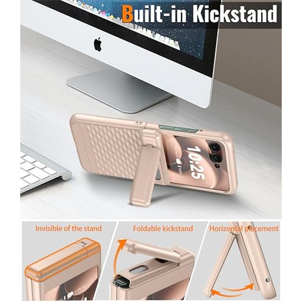 - • Hinge Protection Kickstand The spring-loaded hinge protection design provides the Motorola Razr 2025 with strong full-body protection against everyday wear and tear and accidental shocks.This Moto Razr 2025 case Moto Razr 2024 case comes with a built-in stand that can be placed horizontally, whether you are reading, watching a movie, browsing the web, or video chatting with friends, this case provides the best viewing experience and prevents you from back, neck and wrist pain