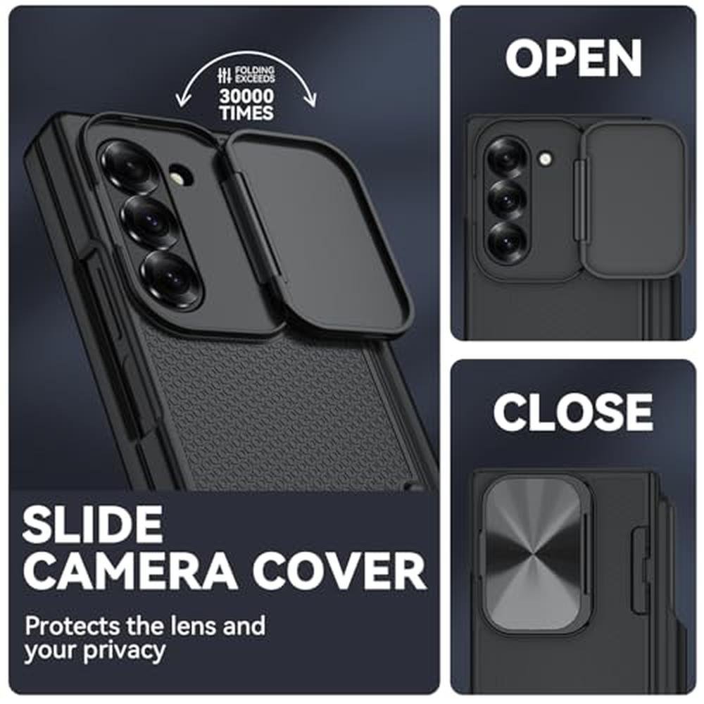 - • The Samsung Z Fold 6 case comes with a 9H tempered glass screen protector and a sliding camera lens cover, providing dual protection for your fragile yet expensive phone screen and lens, guarding against scratches, impacts, and potential damage.