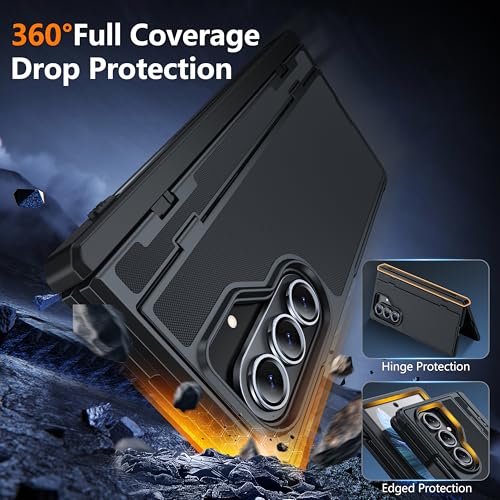 - • Thinner S-Pen Slot Spring Hinge ProtectionThe Z Fold 7 case features a slim S-Pen slot with spring-loaded clip - secure yet lightweight. Its semi-automatic hinge design provides 360 protection against drops, scratches, and impacts, with built-in spring buckle for effortless S-Pen storage.