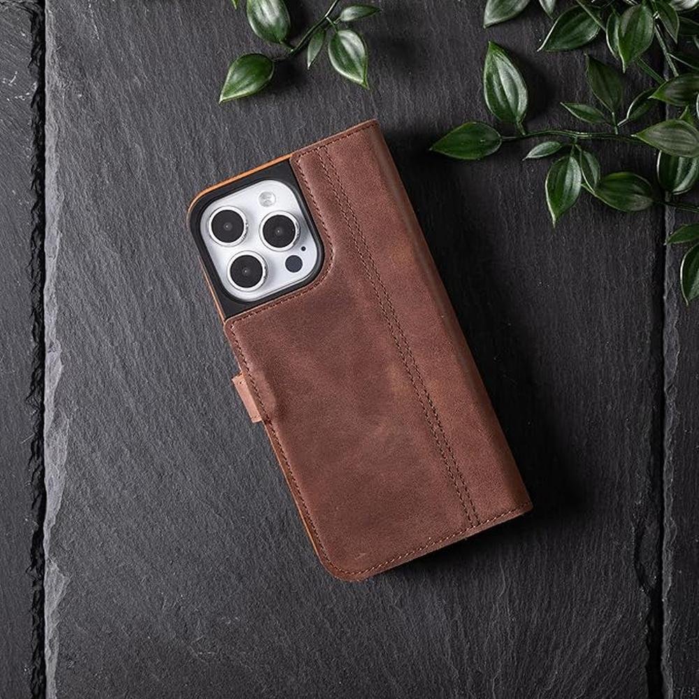 Snakehive Leather Wallet for iPhone 15 Pro - Real Leather Wallet Phone Case - Genuine Leather with Viewing Stand and 3 Card Holder - Flip Folio Cover with Card Slot (Brown)