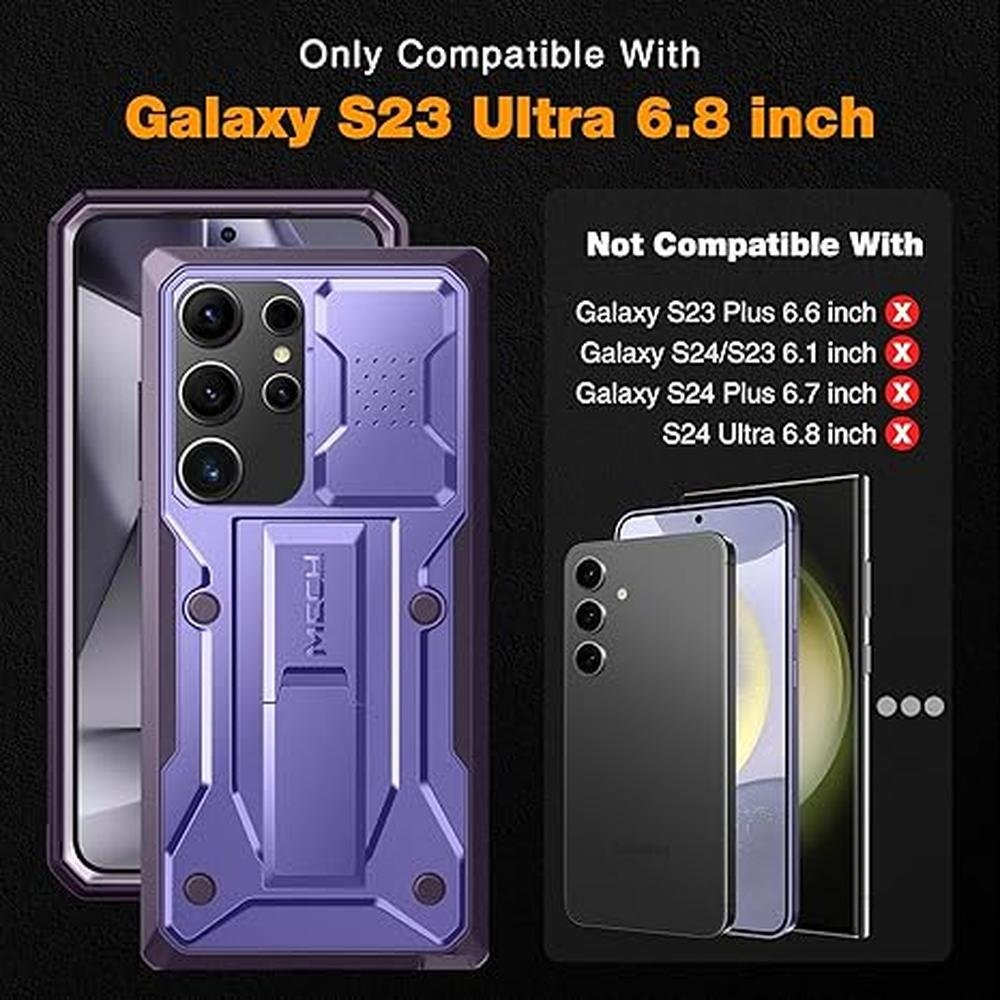 - • 360Rotatable Belt Clip This phone case for Samsung Galaxy S23 Ultra comes with a 360-degree rotatable and detachable belt-clip for user-friendly convenience, that easily attaches to a backpack or belt