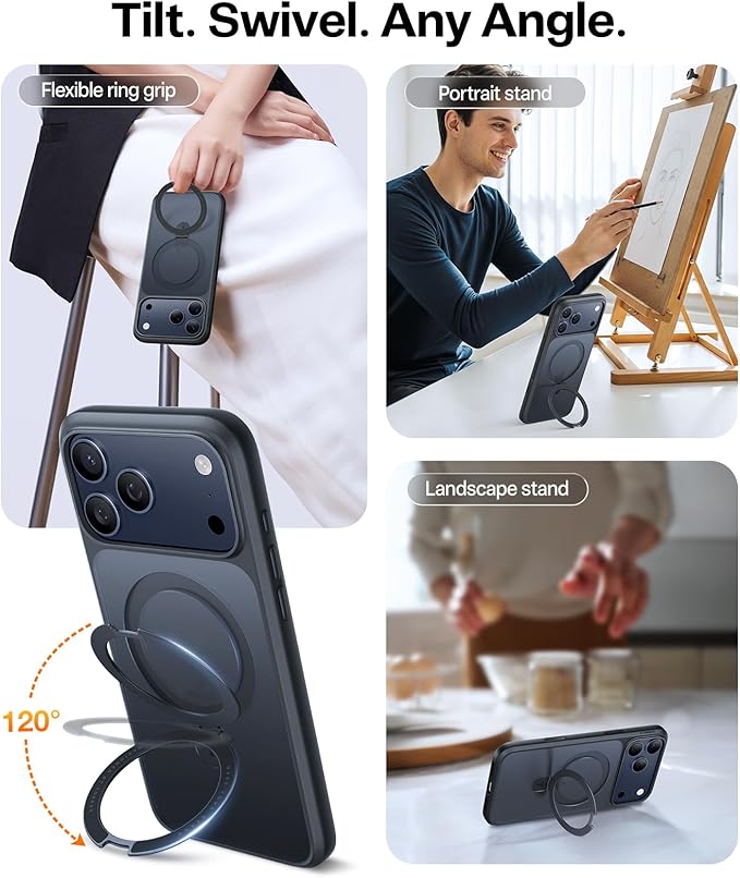 - • Stand Steady, Feel Stable: Life’s full of curveballs, but your iPhone 17 Pro Phone Case always steady, versatile, effortless! Do more than you think, easier than you can imagine. Aerospace-grade aluminum and a metal gear structure for a secure lock. With tested to survive 30,000+ folds, it stays steady through your day, durable for long use. Closed, it lies flush, hidden like it’s not there—enjoy the original grip, no more shaky stands ruining your experience. No bulk, no hassle, live smarter