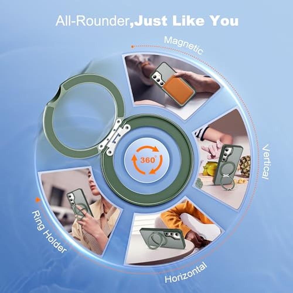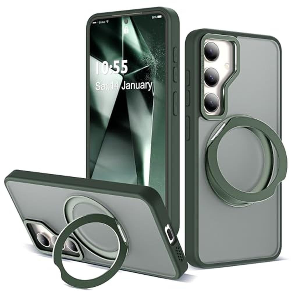 Zalinbo for Samsung Galaxy S25 Case with 360 Rotatable Magnetic Ring Stand Compatible with Mag-safe Military Protection Shockproof Matte Translucent Phone Cases for Samsung Galaxy S25,Dark Green