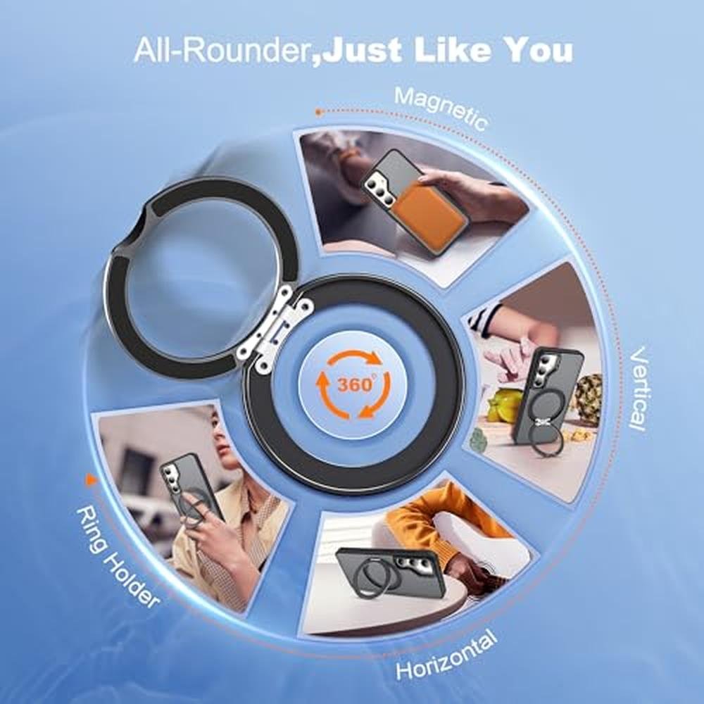 - • Hands-Free Kickstand - Innovative 360 Rotatable Magnetic Ring Stand can be placed in portrait or landscape. You can adjust it as your wished. Enjoy every watching moment without extra support.
