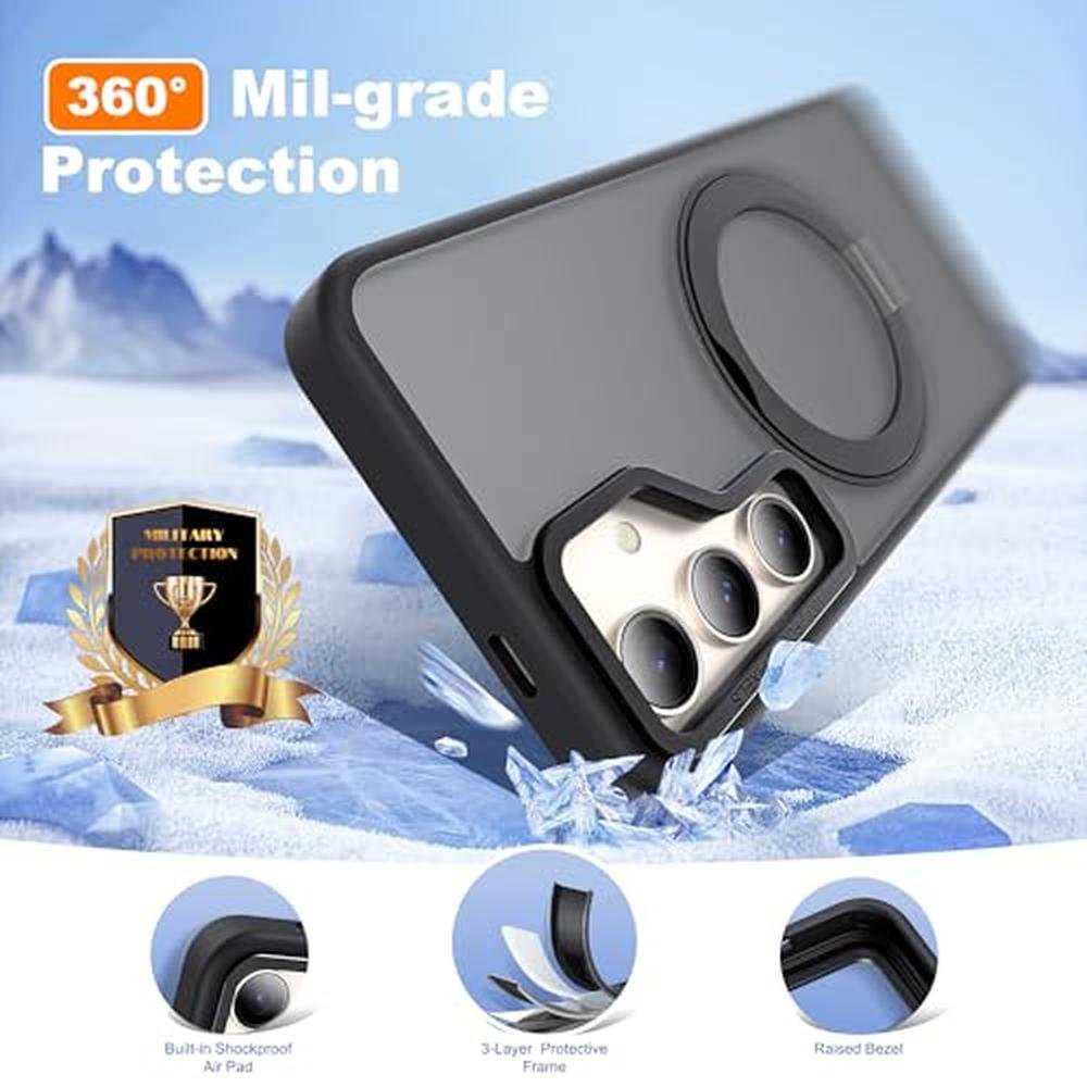Zalinbo for Samsung Galaxy S25 Plus Case with 360 Rotatable Magnetic Ring Stand Compatible with Mag-safe Military Protection Shockproof Matte Translucent Phone Cases for Galaxy S25 ,Black