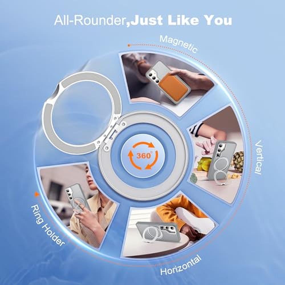 - • Hands-Free Kickstand - Innovative 360 Rotatable Magnetic Ring Stand can be placed in portrait or landscape. You can adjust it as your wished. Enjoy every watching moment without extra support.